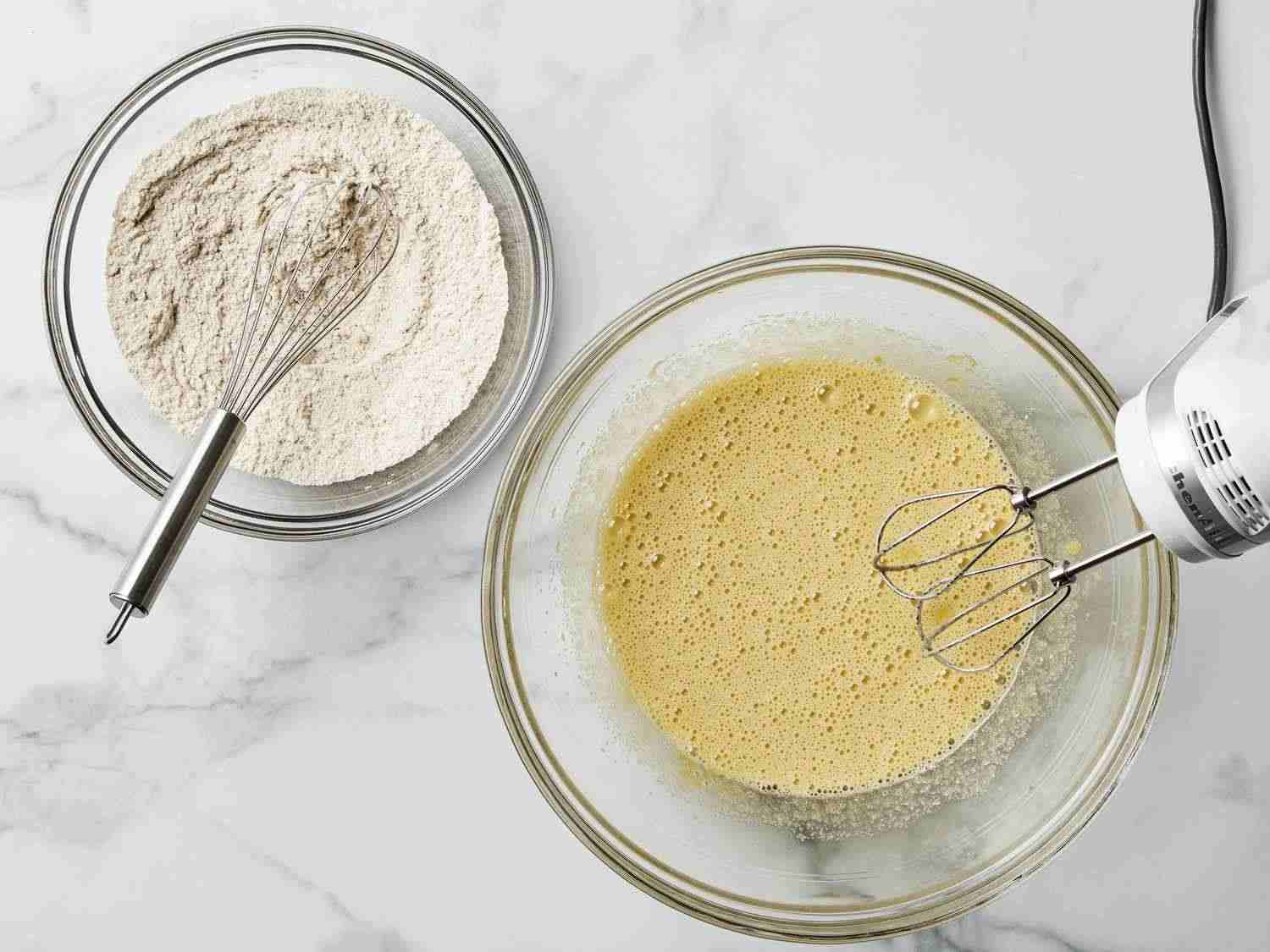 - Step 2:Combine flour, baking soda, nutmeg, cinnamon, cloves, baking powder, and salt in a large bowl; mix well and set aside. Beat eggs, white sugar, brown sugar, and vanilla extract in a large bowl with an electric mixer on high speed until combined, about 30 seconds. Beat in pumpkin and oil. Add flour mixture; mix until batter is blended and smooth. DOTDASH MEREDITH FOOD STUDIOS
