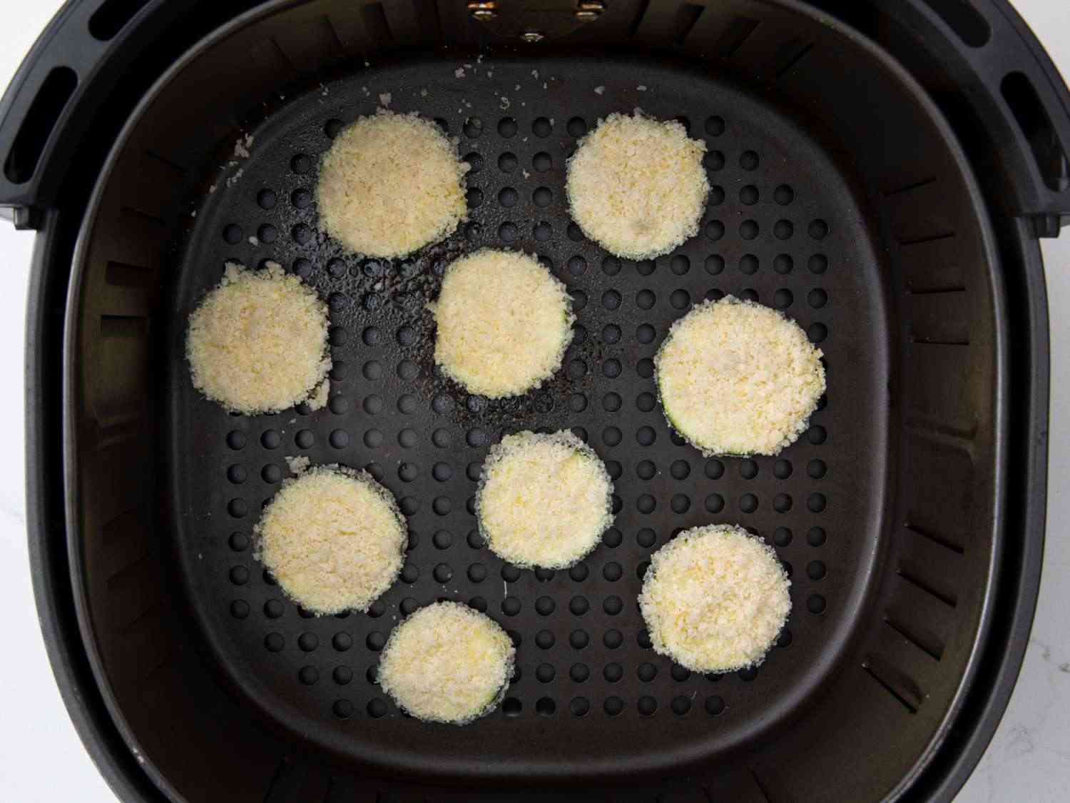 - Step 4:Arrange zucchini slices in a single layer in the air fryer basket, working in batches if necessary. Dotdash Meredith Food Studios